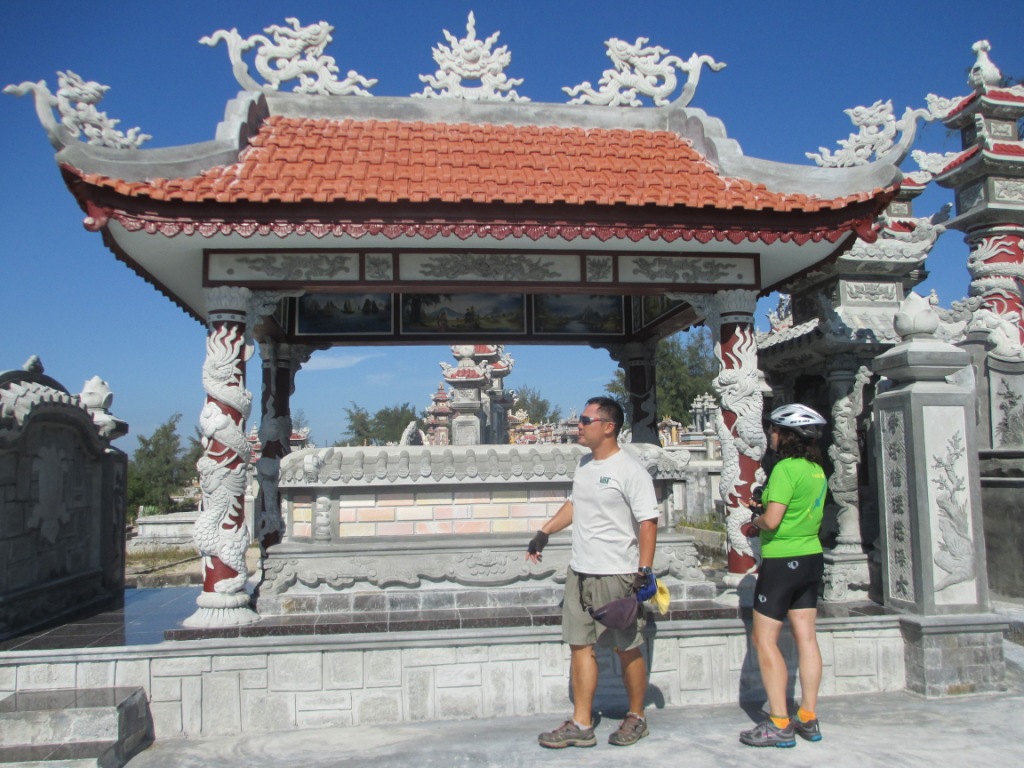 A day of Buddhist shrines, a massive cemetery, driving over a major mountain pass to DaNang, a quick ride in DaNang to an area known for marble carvings, and then a drive to Hoi An.