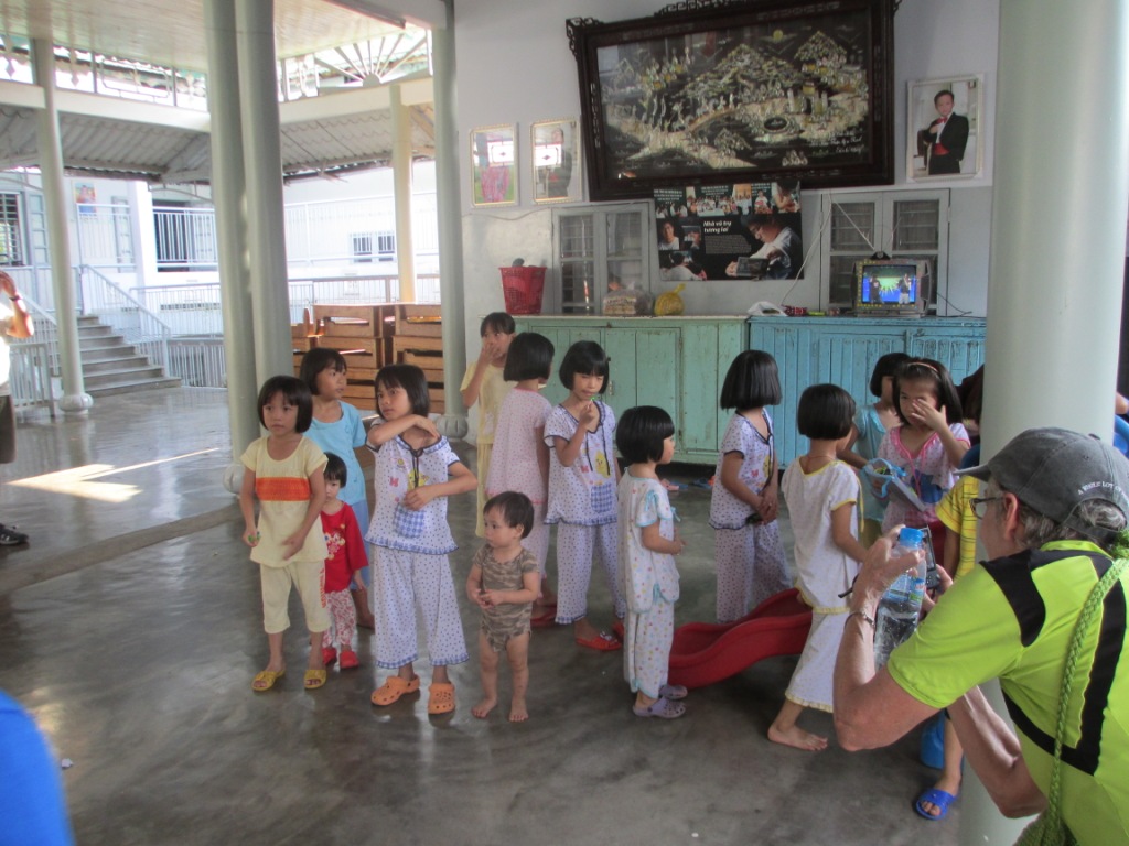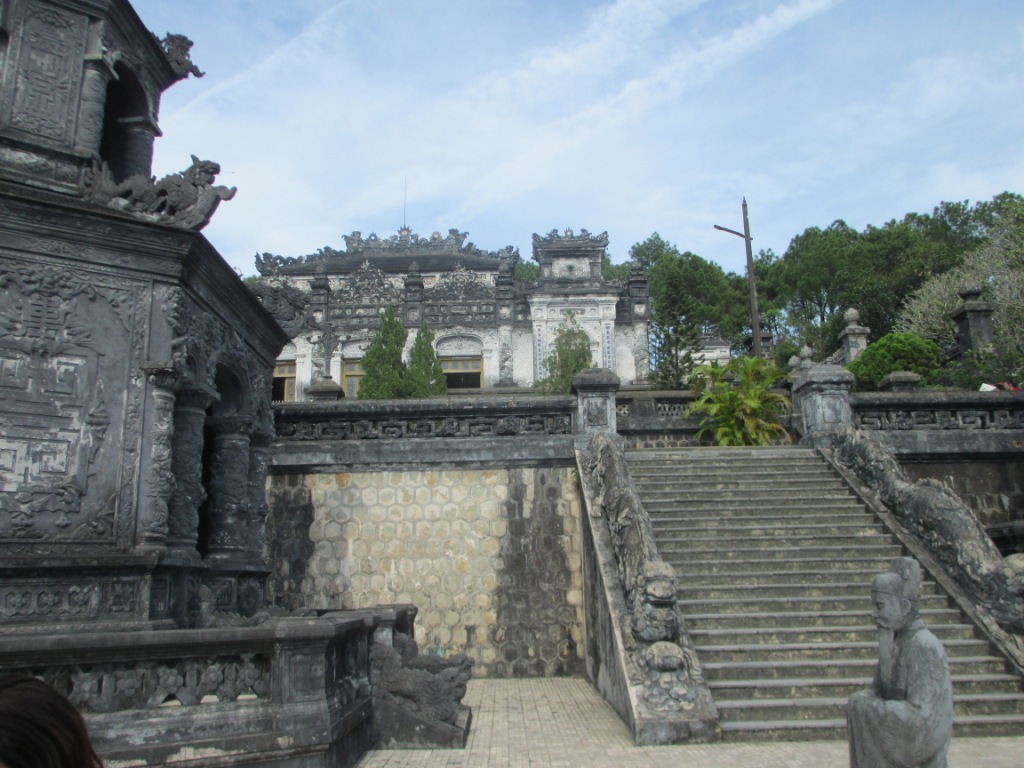 Started bicycling portion of the trip. We rode to King’s tomb — impressive. Gorgeous views. We visited an orphanage run by Buddhist Nuns — Chloe brought them chocolate coins, I brought them AlphaGraphics pens! Ended up at a gorgeous resort – the pool felt great! Very nice, traditional meal. Every meal, lunch or dinner, seems to have seven courses.